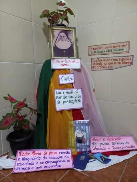 Celebrando os 60 anos da páscoa definitiva de Madre Maria de Jesus, fundadora das Religiosas Missionárias de Nossa Senhora das Dores, criamos um cantinho de Madre Maria de Jesus fazendo memória de sua Primeira Profissão Religiosa, que aconteceu no dia 8 de setembro de 1901 em França. Eis uma das suas frases que pronunciou após ser consagra. “Encontrei Aquele que amo: eu O possuo e não O deixarei!”
