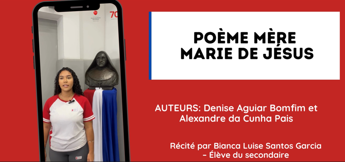 Le beau poème « Mère Marie de Jésus » écrit par Denise Aguiar Bomfim et Alexandre da Cunha Pais, récité avec beaucoup d’émotion par Bianca Luise Santos Garcia, est un remerciement à notre Fondatrice pour son engagement en faveur de l’éducation.