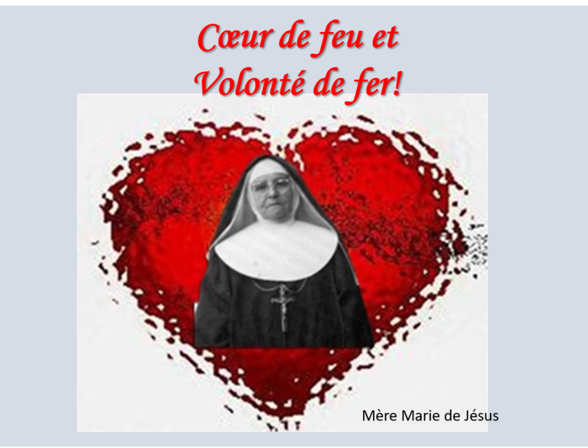 Demandons-nous, pourquoi Mère Marie de Jésus a-t-elle choisi cette devise: Cœur de feu, Volonté de fer? C’est quelque chose de tellement original que si nous regardons son histoire, nous verrons qu’elle s’applique vraiment à elle! Mère avait un cœur de feu. Elle savait qu’elle possédait une force intérieure capable de la faire surmonter de petits et grands obstacles, simplement parce que le projet auquel elle croyait n’était pas le sien. Quant aux disciples d’Emmaüs, son cœur brûlait de feu et explosait à l’intérieur et il n’était pas possible de rester immobile et elle était sûre de tout pour que rien « ne lui vole l’espoir », rien « ne lui vole son rêve missionnaire », se souvenant des mots du Pape François : «Ne laissons pas nous voler l’espérance! Ne laissons pas nous voler la mission! ».