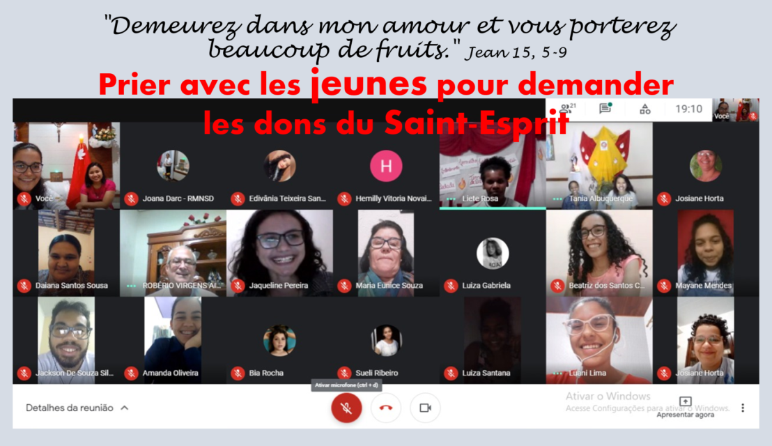 Ainsi, nous sommes déjà au quatrième jour de notre prière en ligne avec les différents jeunes, confirmant la présence de l’Esprit Saint de Dieu dans chaque jeune, dans chaque réalité stimulante que nous sommes appelés à être et surtout à ÊTRE la présence aimante de Dieu.