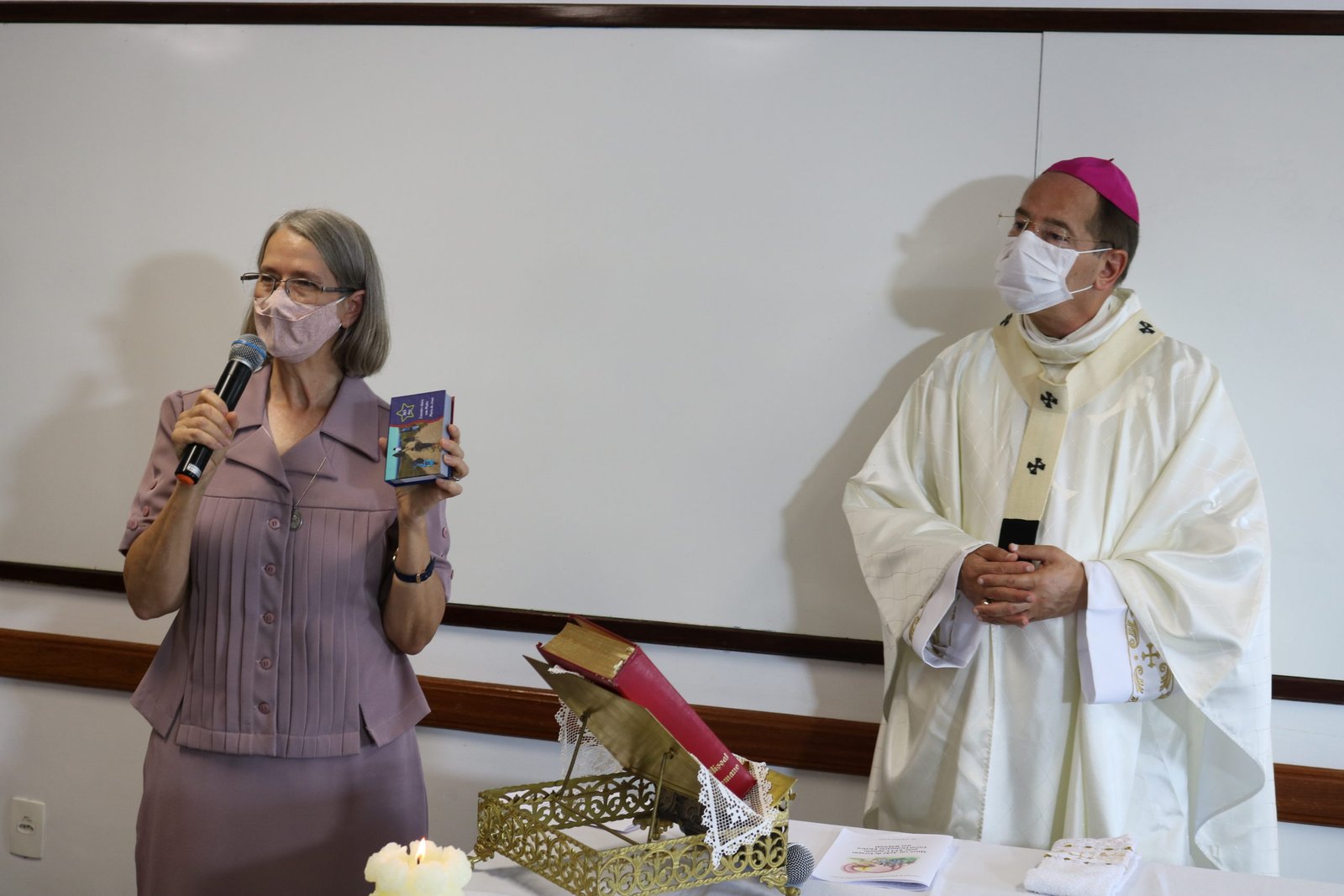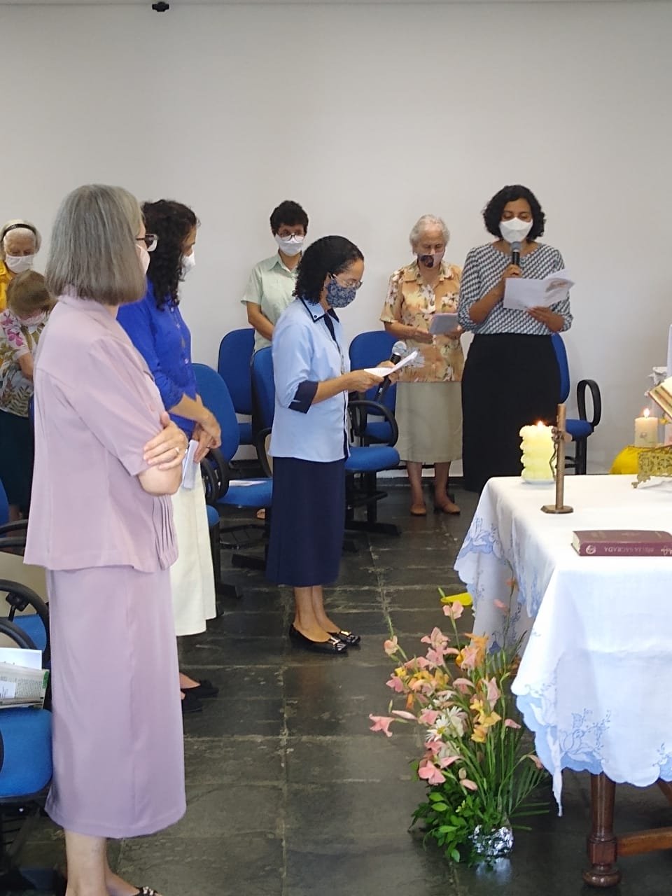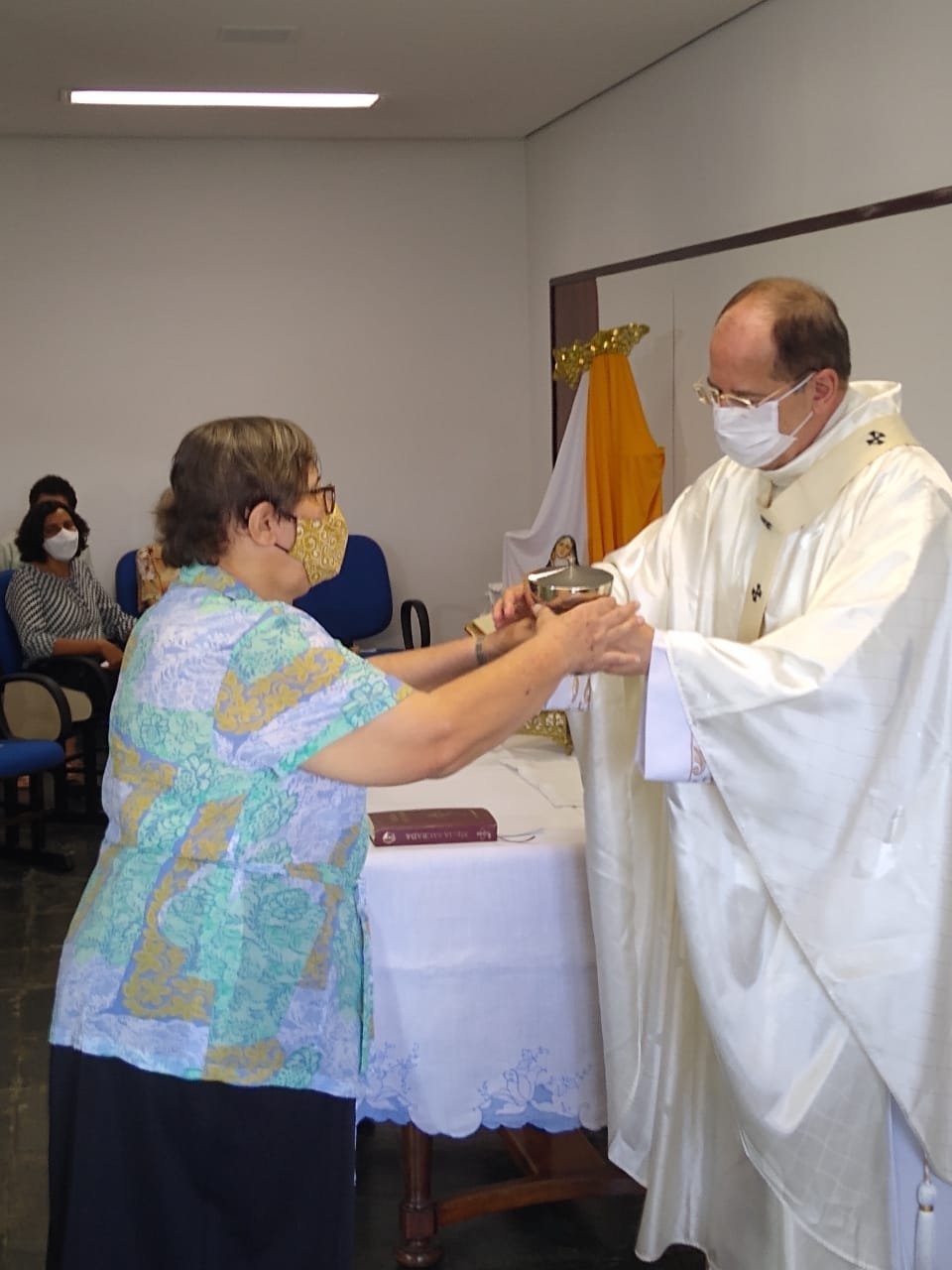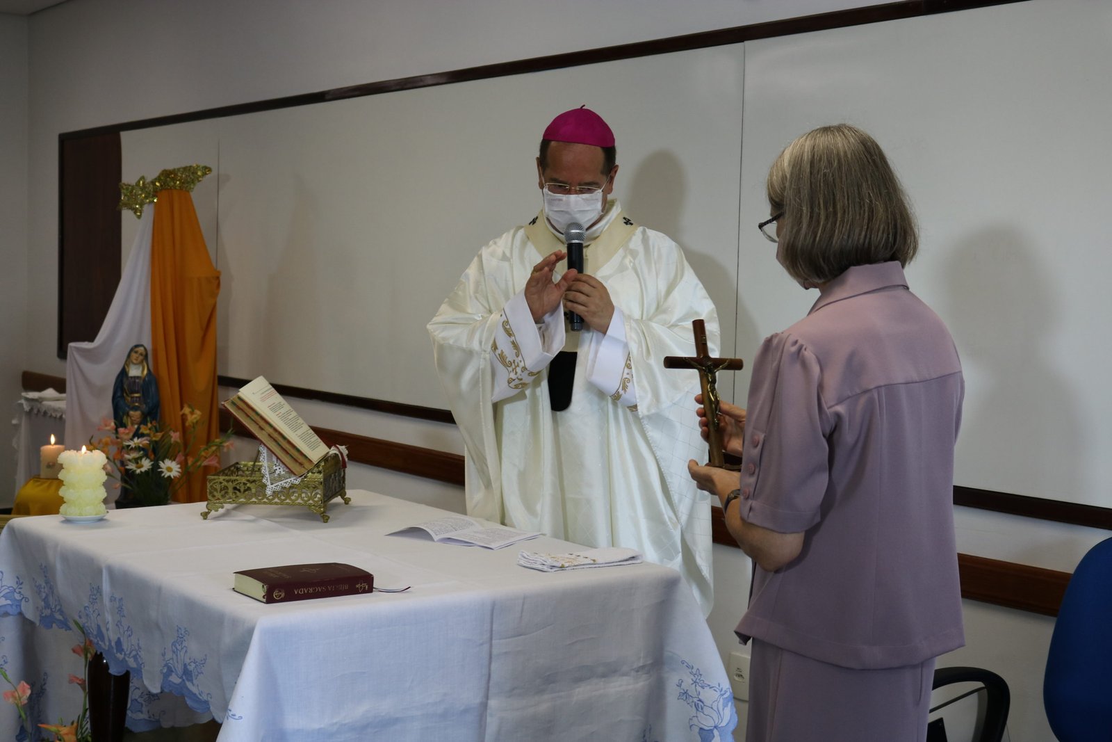 Foi um momento de dar graças a Deus pelo serviço generoso que a Irmã Marlene Maria da Silva e o Conselho Geral prestaram à Congregação e à Igreja nestes últimos quatro anos, animando, articulando e encorajando na missão. Graças também pelo Novo Governo Geral da Congregação eleito no dia 08 de dezembro de 2020: Ir. Valdeci Alcantara de Oliveira Superiora Geral, Ir. Antônia Alves de Albuquerque Vice Geral, e as Conselheiras: Ir. Maize Silva Pereira, Ir. Roseli Chaves da Silva e Ir. Maria Cinara Dourado Castro. Estas Irmãs, eleitas pela Congregação, foram escolhidas por Deus para serem suas mediadoras, anunciá-lo e denunciar toda forma de exclusão. Que o Senhor as abençoe na missão a elas confiada.